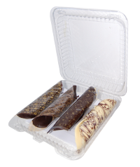 3 rouleaux chocolat noir 1 rouleau chocolat blanc Décors aléatoires DLC facilement lisible Conditionnement en coque cristal (livraison en carton de six coques) |